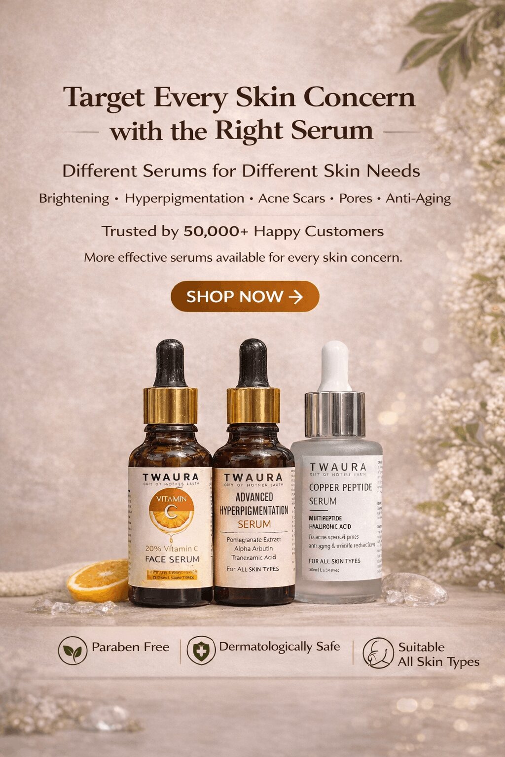 Twaura – Where Nature Meets Radiance We combine natural ingredients, modern science, and ethical practices to ensure every product nourishes, protects, and enhances your skin’s natural beauty.