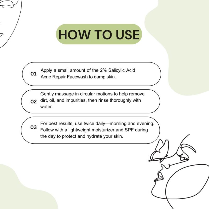 Say goodbye to breakouts with our 2% Salicylic Acid Acne Repair Facewash.