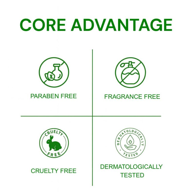 - Green Tea Extract – Antioxidant-rich support to reduce irritation.