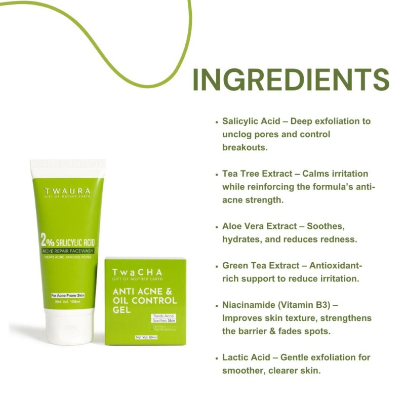 1️⃣ Acne & Oil Control Gel (50gm) – Targets active acne, reduces redness, and prevents future breakouts.