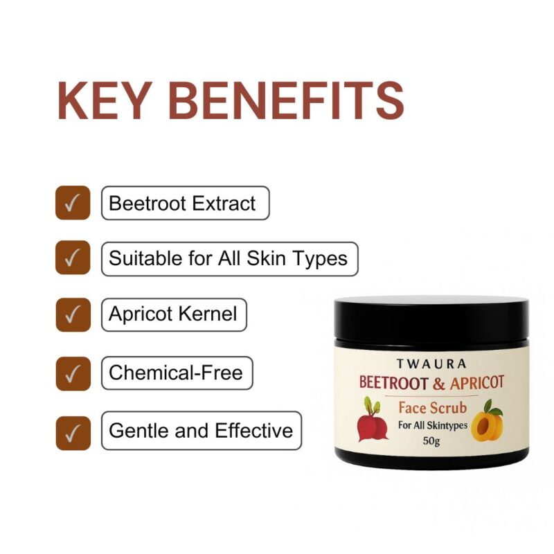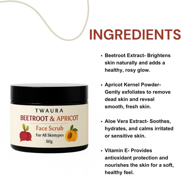 Experience the ultimate blend of nature’s finest ingredients with our Beetroot & Apricot Face Scrub.
