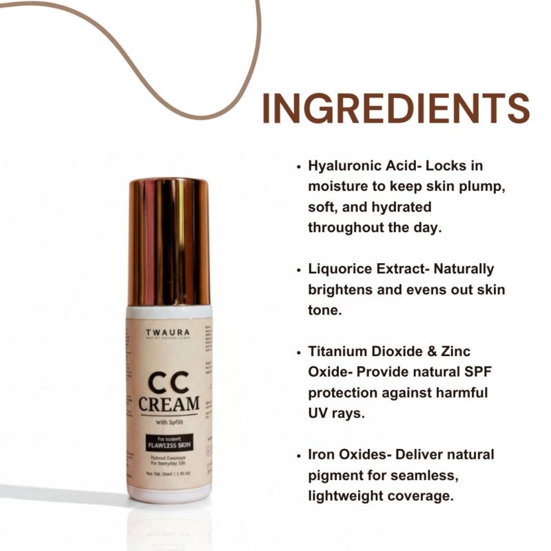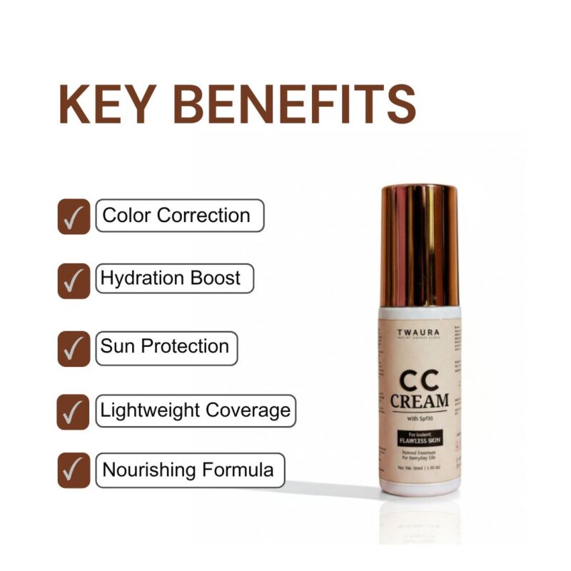 Enhance your everyday glow with Twaura’s Natural Radiance CC Cream, your go-to for effortlessly flawless skin.