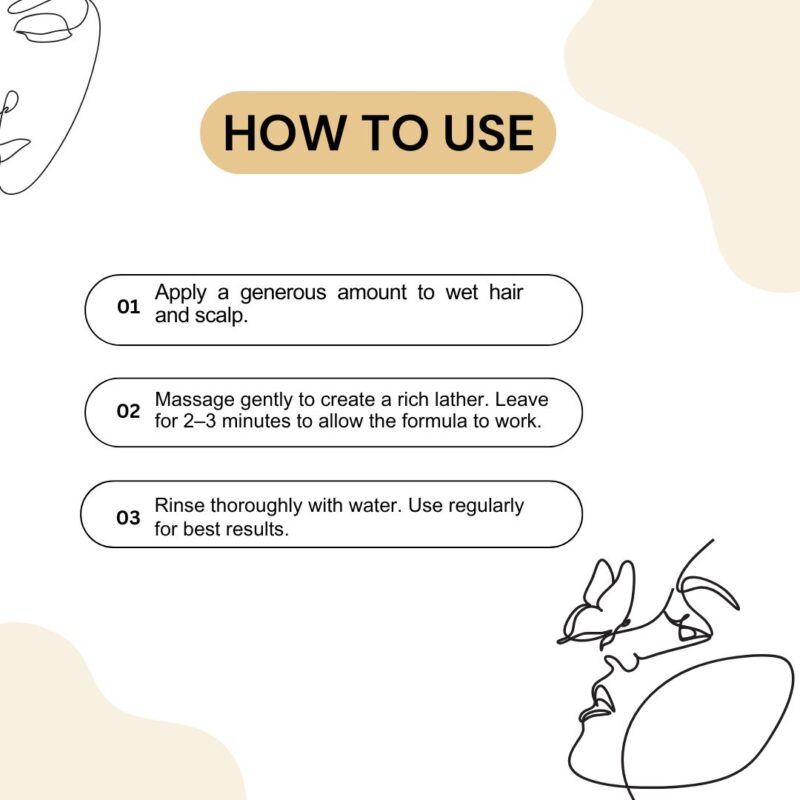 - Apply a generous amount to wet hair and scalp.
