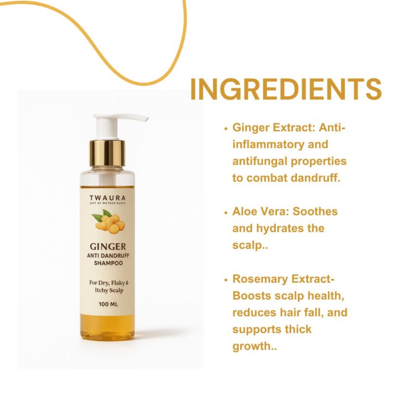 Say Goodbye to Flakes, Hello to Healthy Hair Combat dandruff naturally with Twaura’s Ginger Anti-Dandruff Shampoo, specially formulated to soothe the scalp, reduce itching, and eliminate flakes. Enriched with the power of ginger extract, this gentle yet invigorating shampoo harnesses natural anti-inflammatory and antifungal properties to restore scalp health while cleansing hair effectively. Enjoy refreshed, revitalized, and flake-free hair with every wash, making it the perfect solution for those seeking healthy scalp and strong, shiny hair.