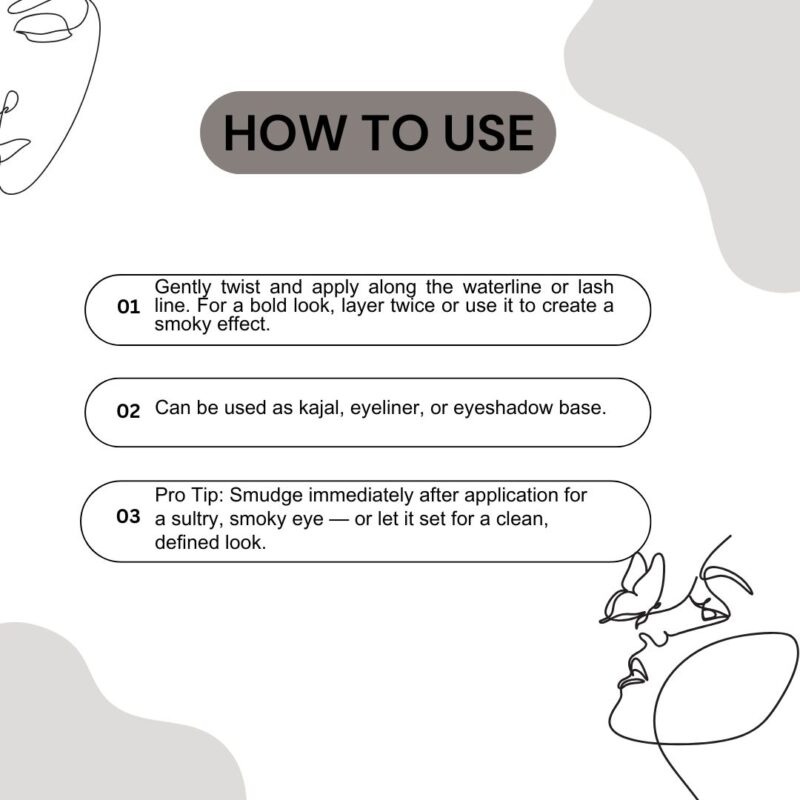 - Can be used as kajal, eyeliner, or eyeshadow base.
