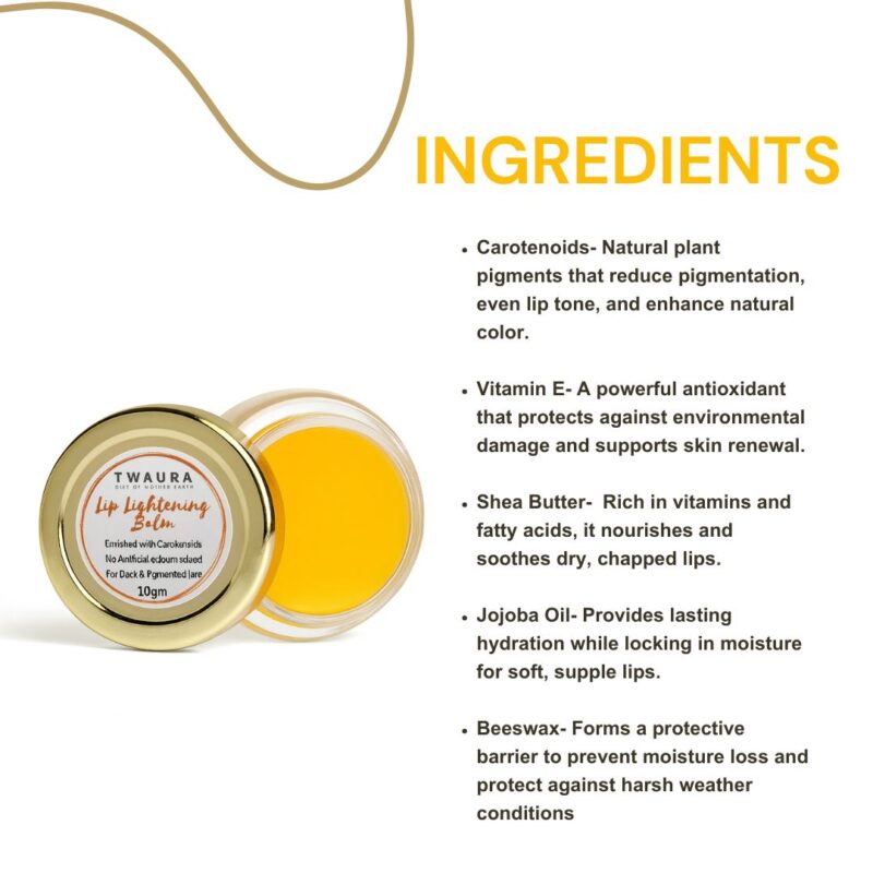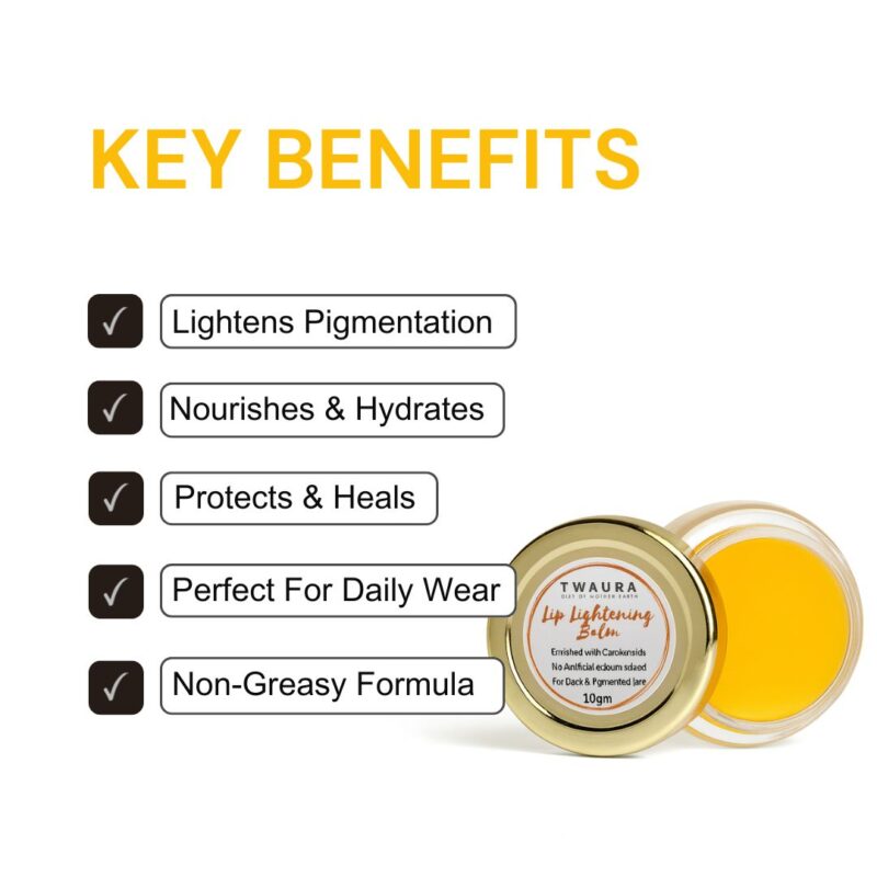 Experience the beauty of naturally radiant lips with Twaura’s Lip Lightening Balm with Carotenoids — a luxurious, nutrient-rich formula designed to lighten pigmentation, restore natural lip color, and deeply nourish.