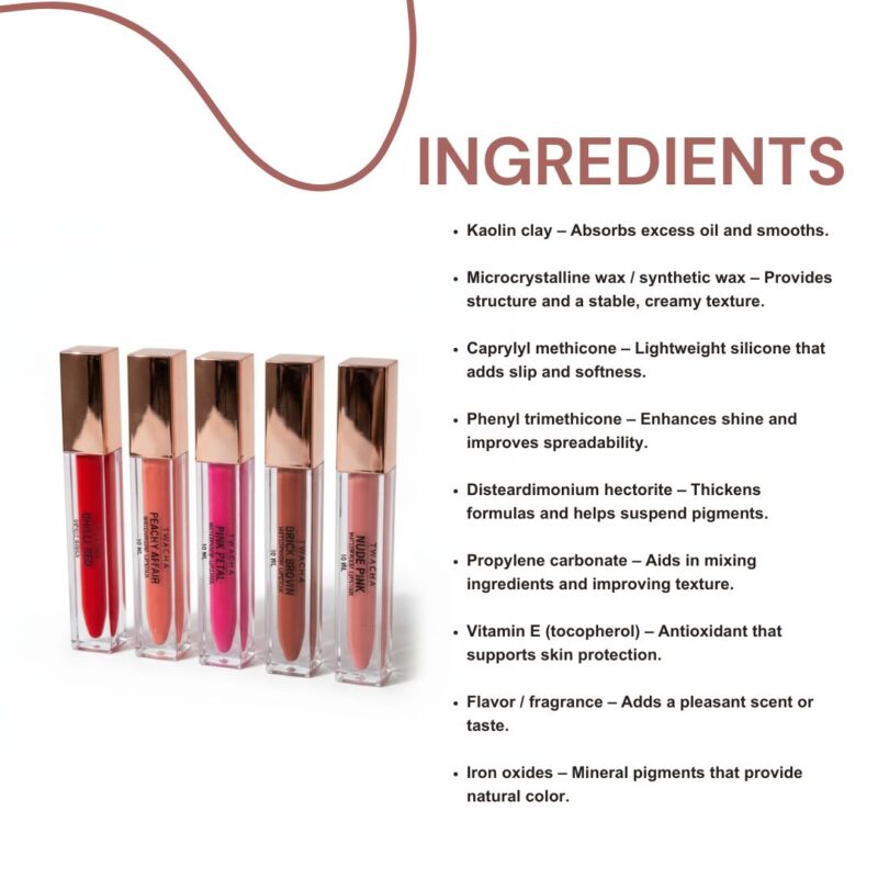 - Phenyl trimethicone – Enhances shine and improves spreadability.