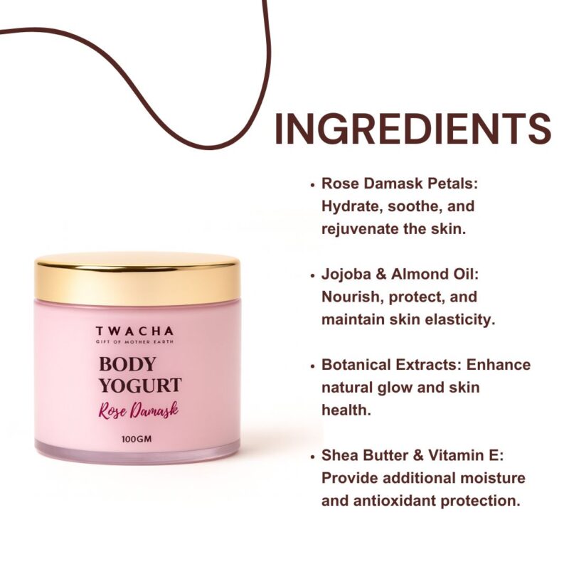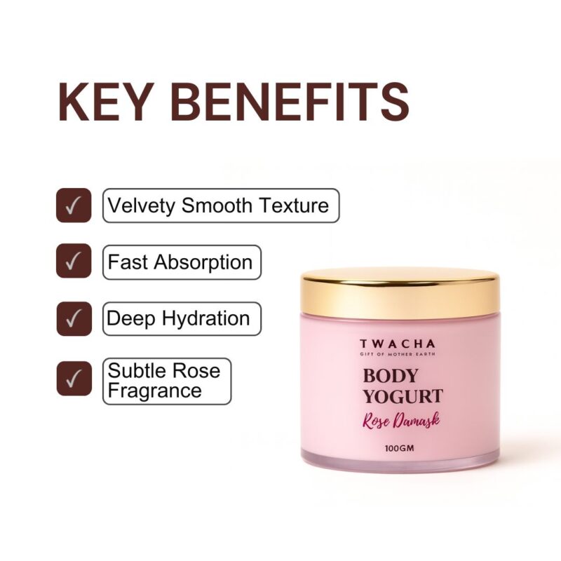 Treat your skin to Twaura’s Rose Damask Body Yogurt, a luxurious body moisturizer designed to deeply hydrate, nourish, and leave your skin velvety smooth. Crafted with premium natural ingredients, this body yogurt melts effortlessly into the skin, delivering long-lasting moisture and a radiant, healthy glow. Infused with the delicate aroma of Rose Damask, it provides a soothing and uplifting sensory experience, making every application a moment of indulgence.