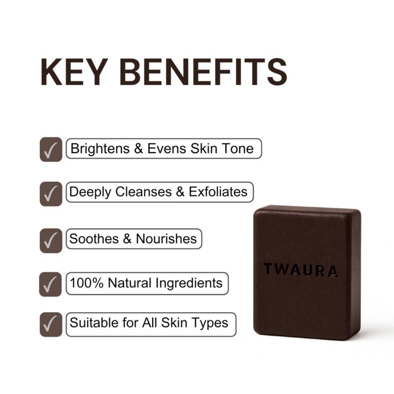 Rediscover the timeless charm of traditional skincare with Twaura’s Ubtan Fairness Soap — a luxurious blend of turmeric, saffron, sandalwood, and natural botanicals that brighten, purify, and rejuvenate your skin. This handcrafted formula gently exfoliates dead skin cells, removes impurities, and helps reduce dark spots — revealing a visibly smoother, more luminous complexion. Infused with the age-old wisdom of Ubtan, it leaves your skin soft, radiant, and naturally glowing with every wash.