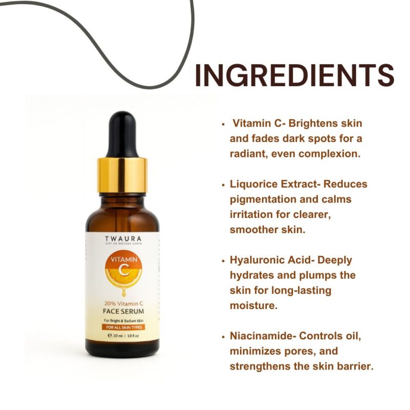 - Vitamin C- Brightens skin and fades dark spots for a radiant, even complexion.